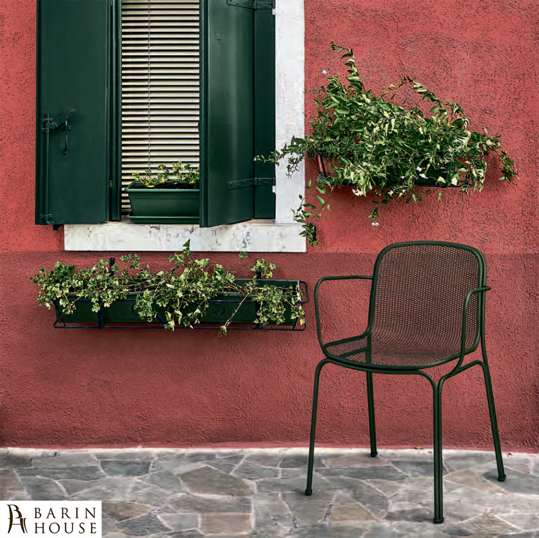 Villa 2 - это современное кресло, вдохновленное классическими уличными креслами, которые используют в парижских бистро, на летних террасах ресторанов и улочках. Сидение кресла сформировано из металлической сетки и имеет эргономичную форму в сочетании с четырьмя трубчатыми стальными элементами, которые образуют легкий, но крепкий каркас с металлическими подлокотниками.
