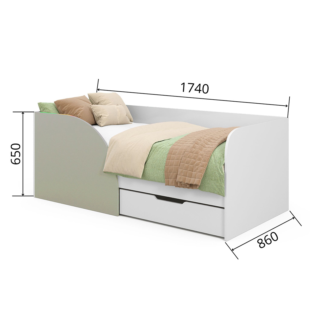 Корпус изготовлен из высококачественного ЛДСП, которое отличается прочностью, устойчивостью к износу и долговечностью. Такое основание обеспечивает надёжность мебели и её стойкость к ежедневным нагрузкам. Основание под матрас выполнено из натуральных буковых ламелей — они равномерно распределяют нагрузку, хорошо вентилируют матрас и способствуют здоровому сну.
