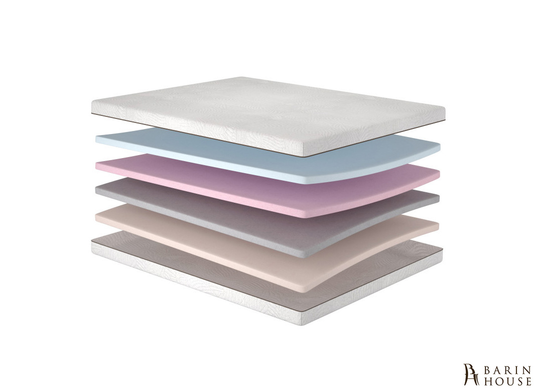Слои Blue Soft Foam, Pink Block Foam, Grey Stone Foam и Peach Soft Foam гармонично работают вместе: мягкие материалы дарят комфорт, а более плотные создают надёжное ортопедическое основание.