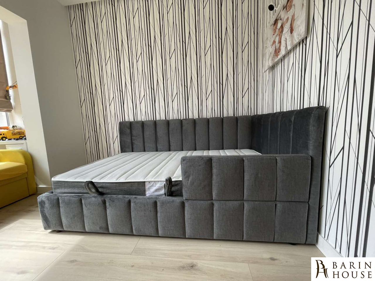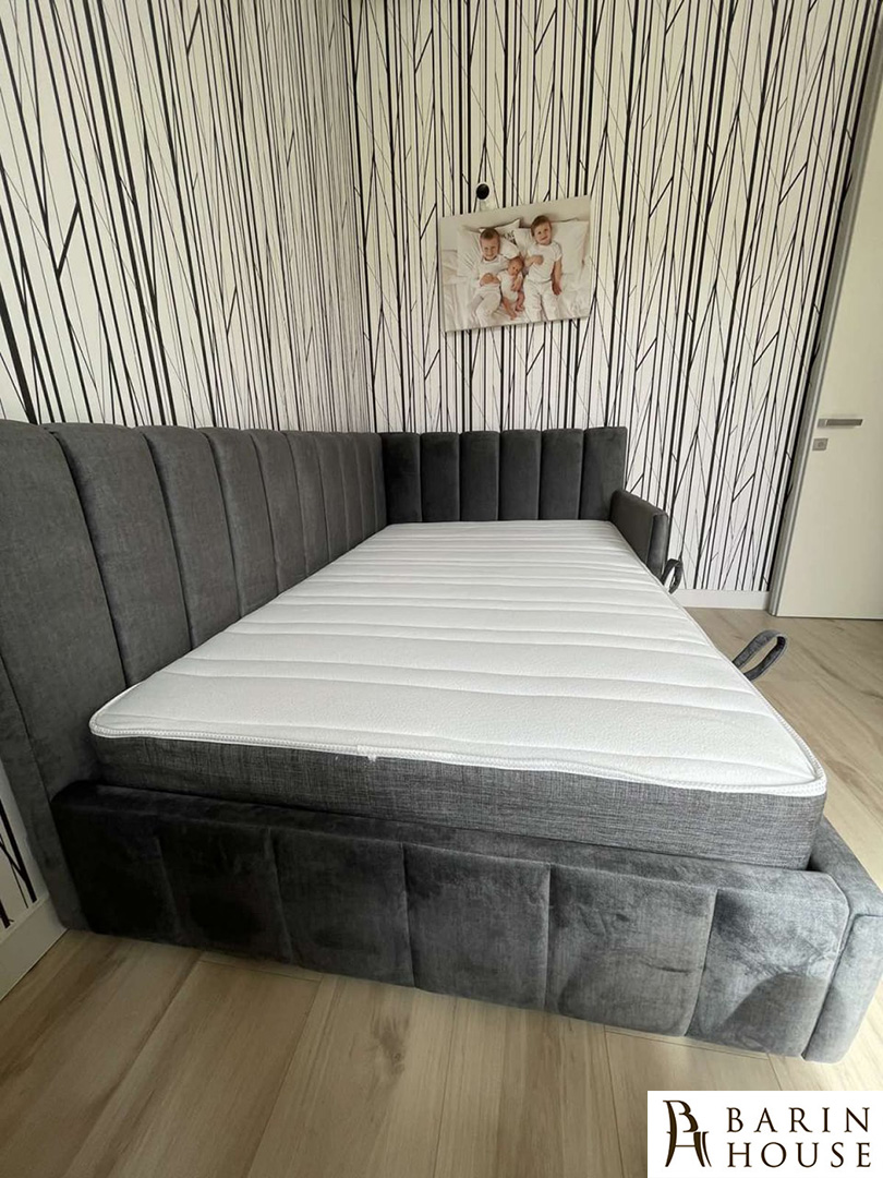 Ліжко Луна - це поєднання елегантного дизайну, функціональності та бездоганного комфорту. Її високе м'яке узголів'я з вишуканим декоративним простроченням надає інтер'єру витонченості, створюючи атмосферу затишку та розкоші. Наявність бортика додає додаткову зручність та завершеність дизайну, підкреслюючи стиль та продуманість моделі. Сучасні лінії та об'ємні форми роблять ліжко виразним акцентом у будь-якій спальні.