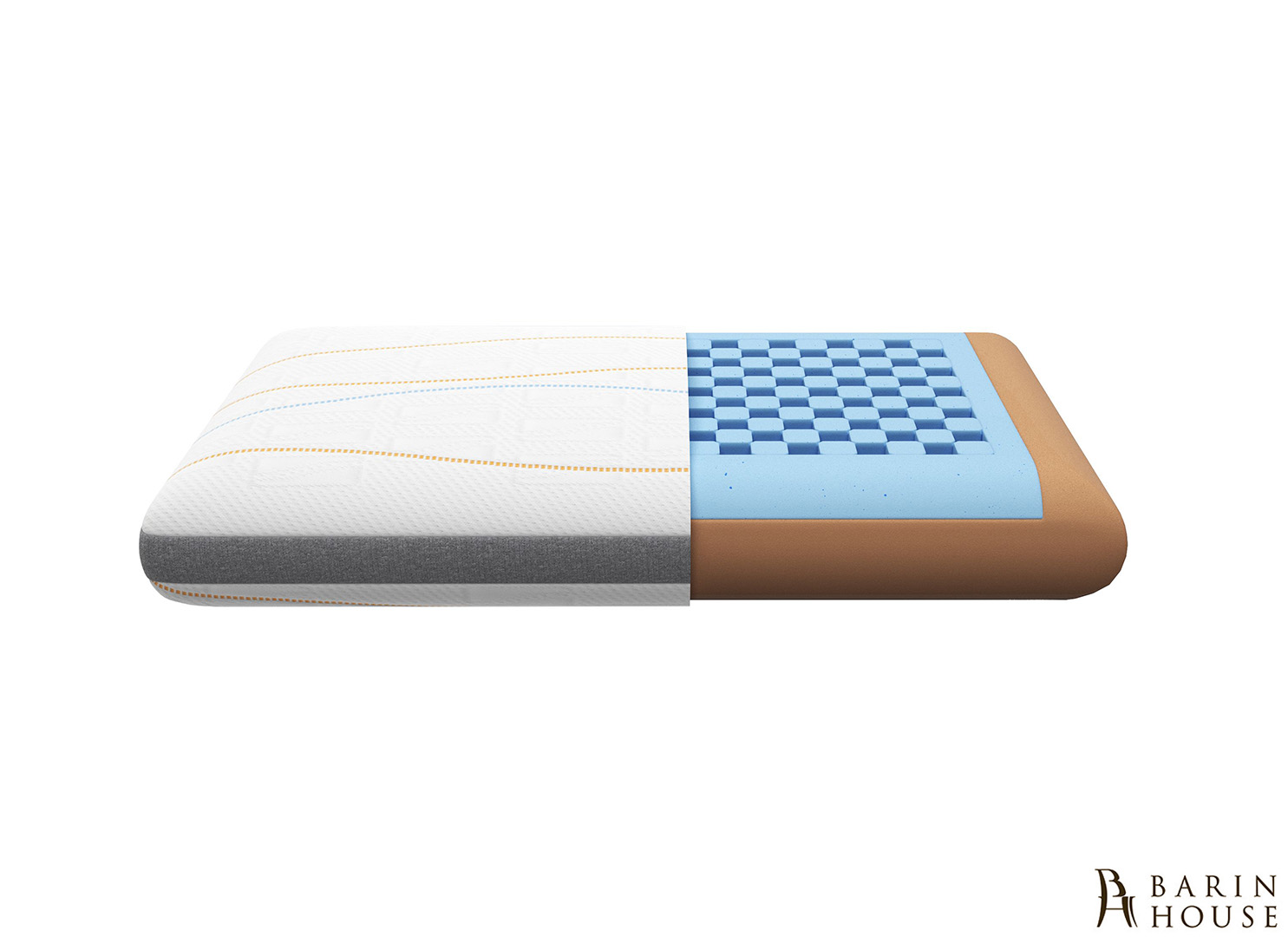 В основі подушки — CNC-вирізана Cool Gel Memory Foam, піна з охолоджувальним гелем, що точно повторює анатомічні контури голови й шиї. Завдяки цьому вона рівномірно розподіляє тиск, знімає напруження в м’язах і допомагає зберігати правильне положення хребта.