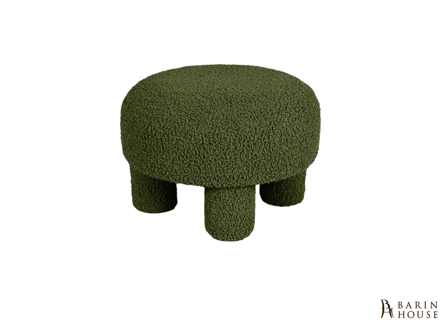 Модель виконана в м'якому, округлому дизайні із стійкими циліндричними опорами, завдяки чому пуф виглядає сучасно та скульптурно. Оббивка з текстурованої тканини з ефектом букле надає виробу затишного характеру та візуальної глибини, а насичений зелений колір створює відчуття природної гармонії та спокою.